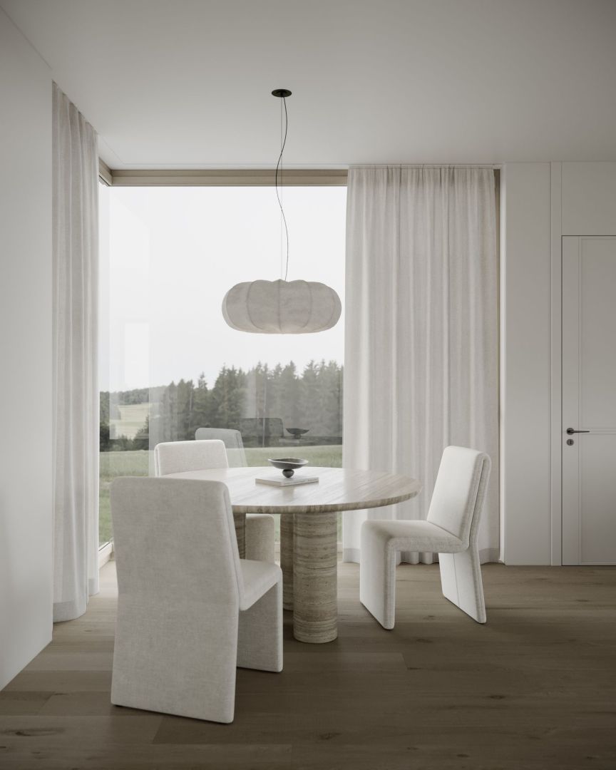 - Elegantný tvar inšpirovaný stĺpom, vybavený bielym alebo čiernym skleneným stropným svietidlom.