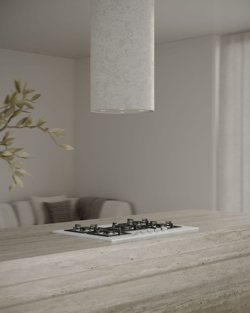 Columni Stone Light Grey - ostrovčekový digestor so svetlým betónovým dekorom