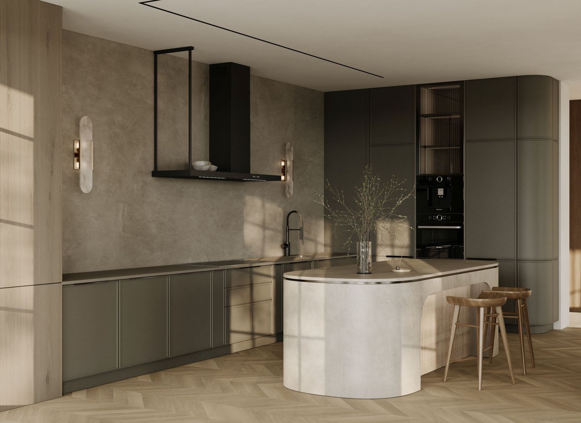 Ovládanie sa zabezpečuje pomocou moderného elektronického panela s displejom a tlačidlami SoftTouch s jemným podsvietením. Používatelia si môžu vybrať medzi ľavým alebo pravým odsávačom pár, čo uľahčuje prispôsobenie kuchynskému usporiadaniu.