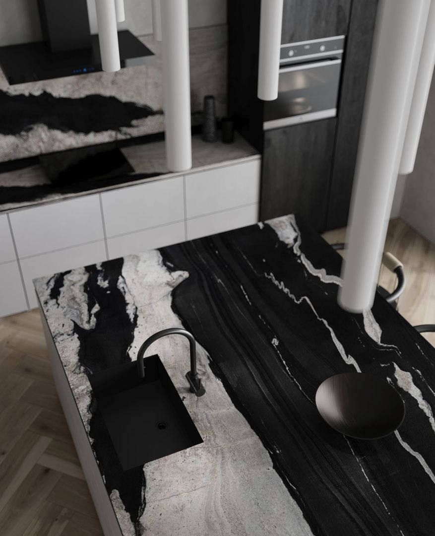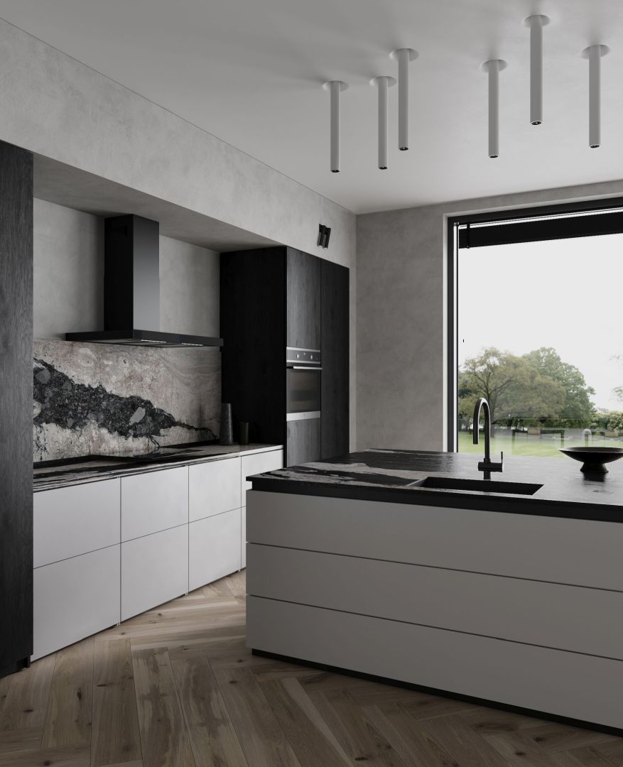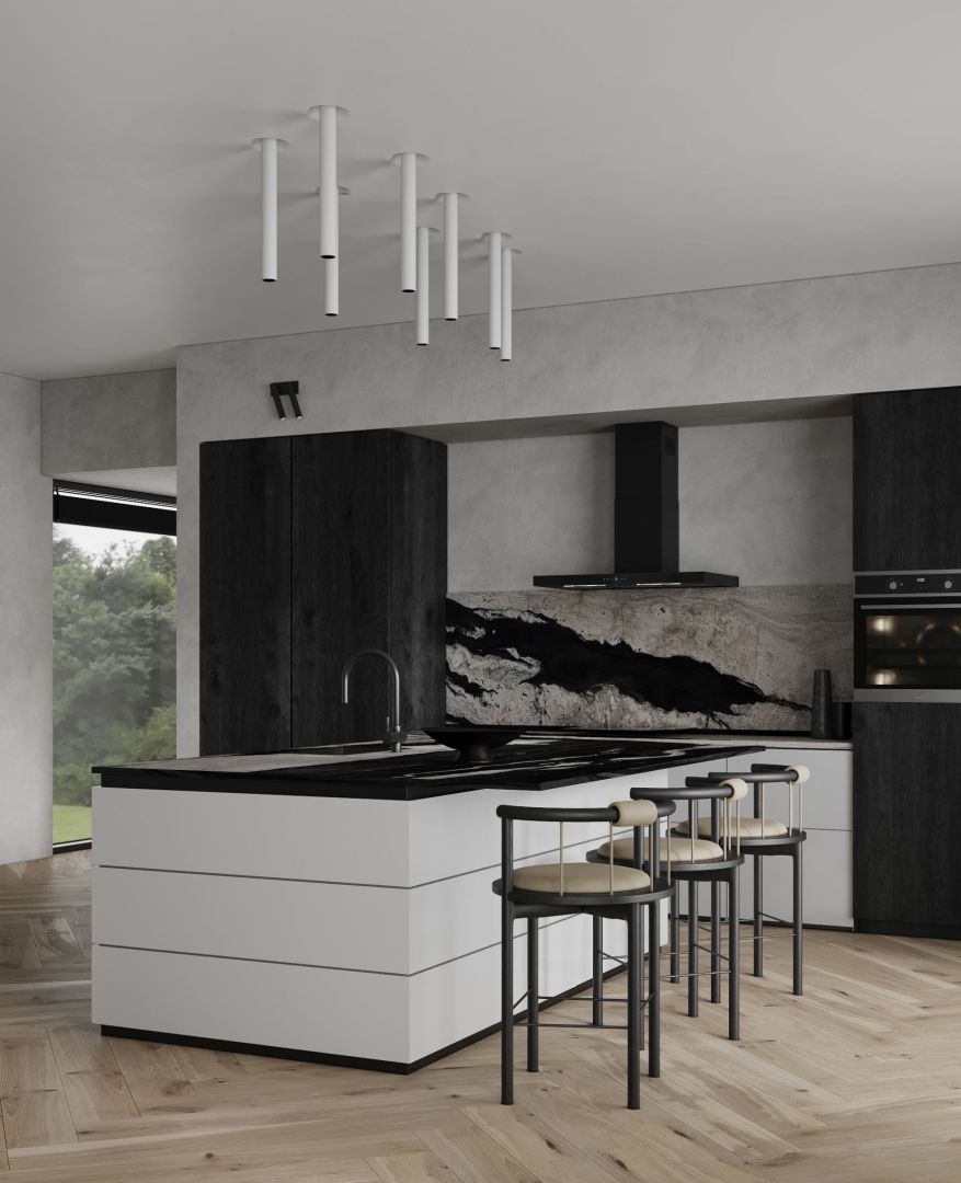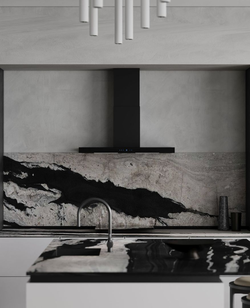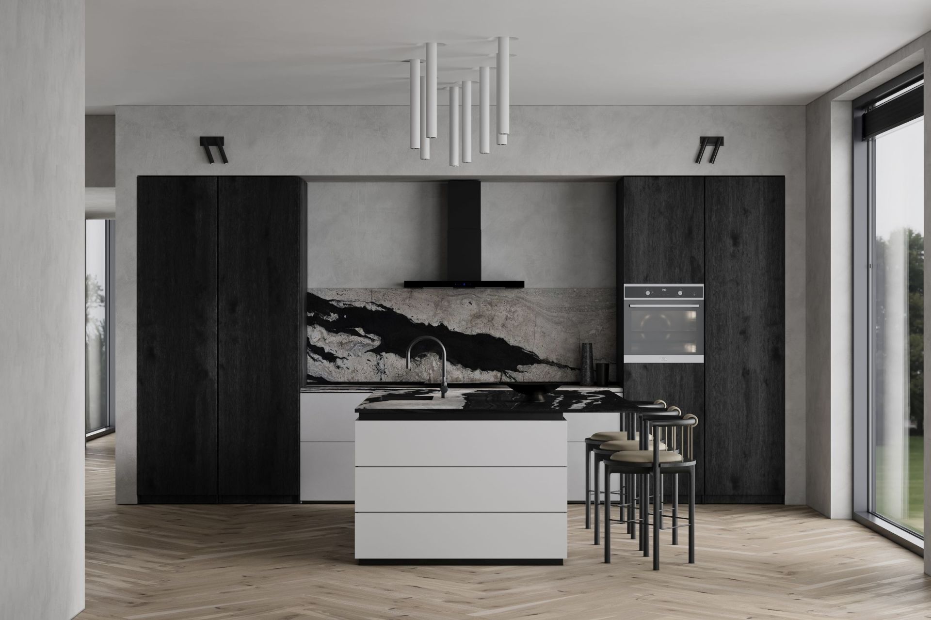 Ostrovčekový digestor Sento OR Strips Black Matt – montáž: