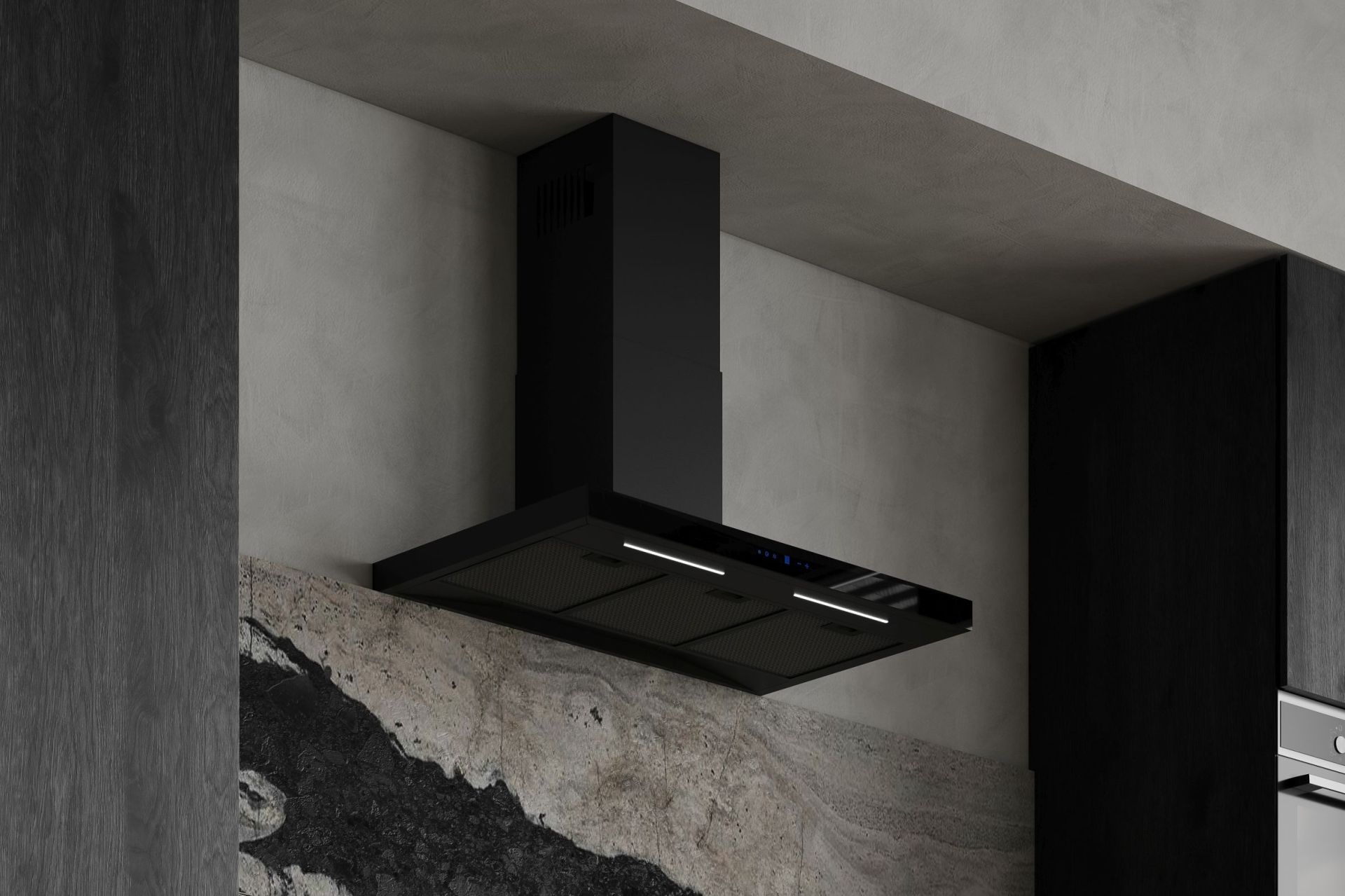 Nová verzia komínového digestora Sento OR vyrobená s dôrazom na najmenšie detaily, celá lakovaná v módnej čiernej farbe, ktorá sa prispôsobuje najnovším kuchynským trendom. Za pozornosť stojí najmä predná strana, ktorá je pokrytá čiernym tvrdeným sklom, kde sa v centrálnom mieste nachádza dotykové ovládanie s displejom. Na spodnej strane sú dva LED pásy, ktoré dokonale osvetľujú povrch pracovnej dosky. Digestor je dostupný v dvoch veľkostiach: 60 cm a 90 cm.