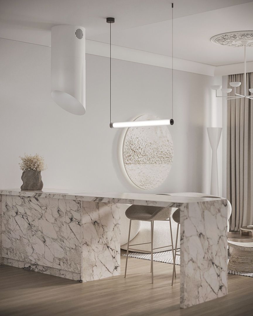 Biely ostrovčekový tubus s takýmto jedinečným tvarom bude najlepšie vyzerať v moderných priestoroch v modernom, new classic, scandic alebo soft glam štýle. Vyberte si dôkladne elegantný a dokonale funkčný model Hiro a užívajte si ho každý deň.