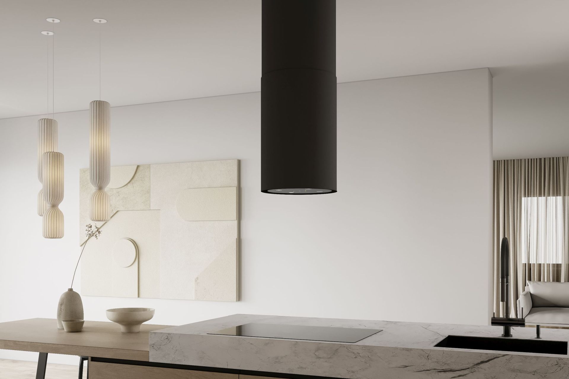 Ostrovčekový digestor Tubo Black Matt Gesture Control – Kompletná sada: