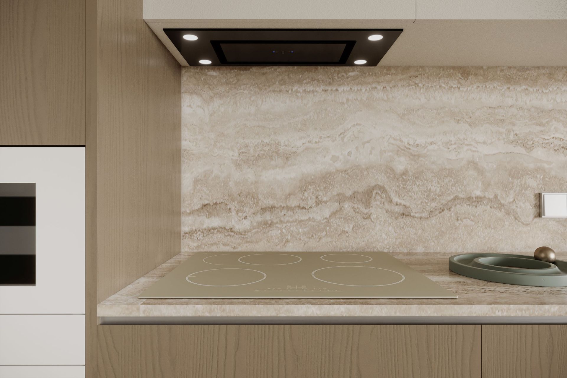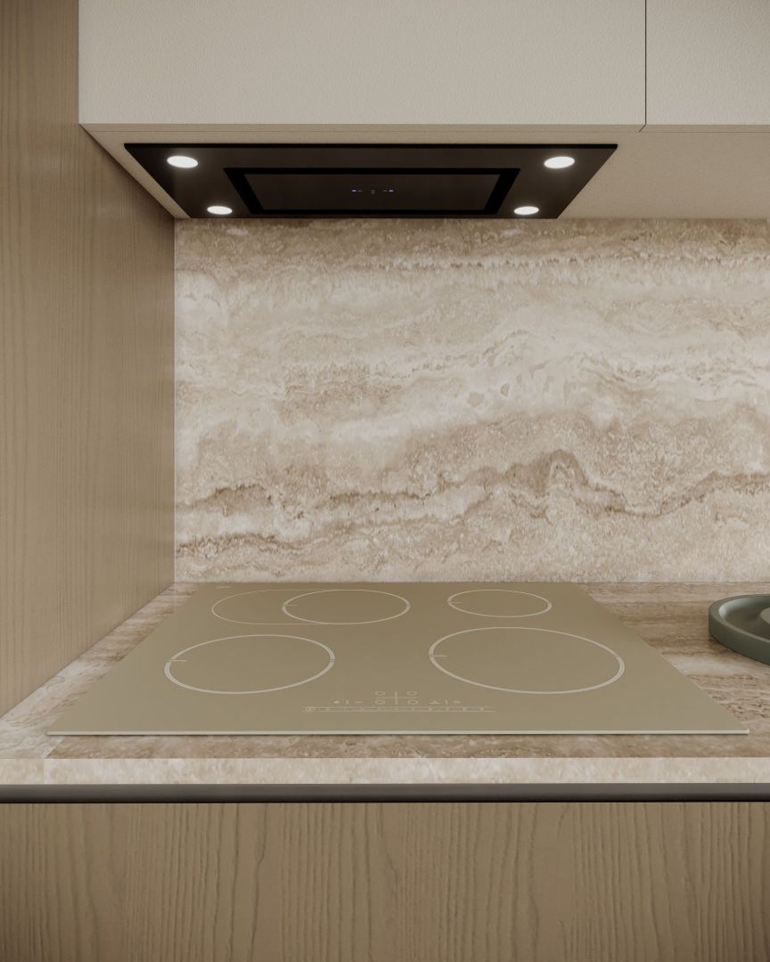 Absorpciu má na starosti nová generácia BLDC (bezkefovej) turbíny, ktorá sa vyznačuje vysokou účinnosťou, energetickou účinnosťou a predovšetkým tichosťou pri prevádzke. Ovládame ho gestami, na plné ovládanie digestora stačia tri pohyby rúk. Sada obsahuje aj rádiové diaľkové ovládanie pre tradicionalistov. Varnú dosku osvetľujú 4 energeticky úsporné LED svetlá, každý horák samostatne. LED diódy majú farebnú teplotu 4000K (blízka dennému svetlu), vďaka čomu budú farby riadu realistické.