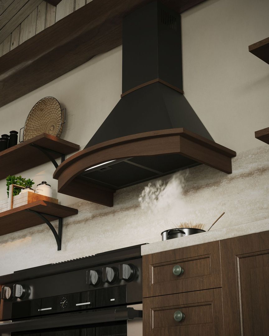 Rustikálny digestor Rustic Black Matt Gesture Control – v skratke: