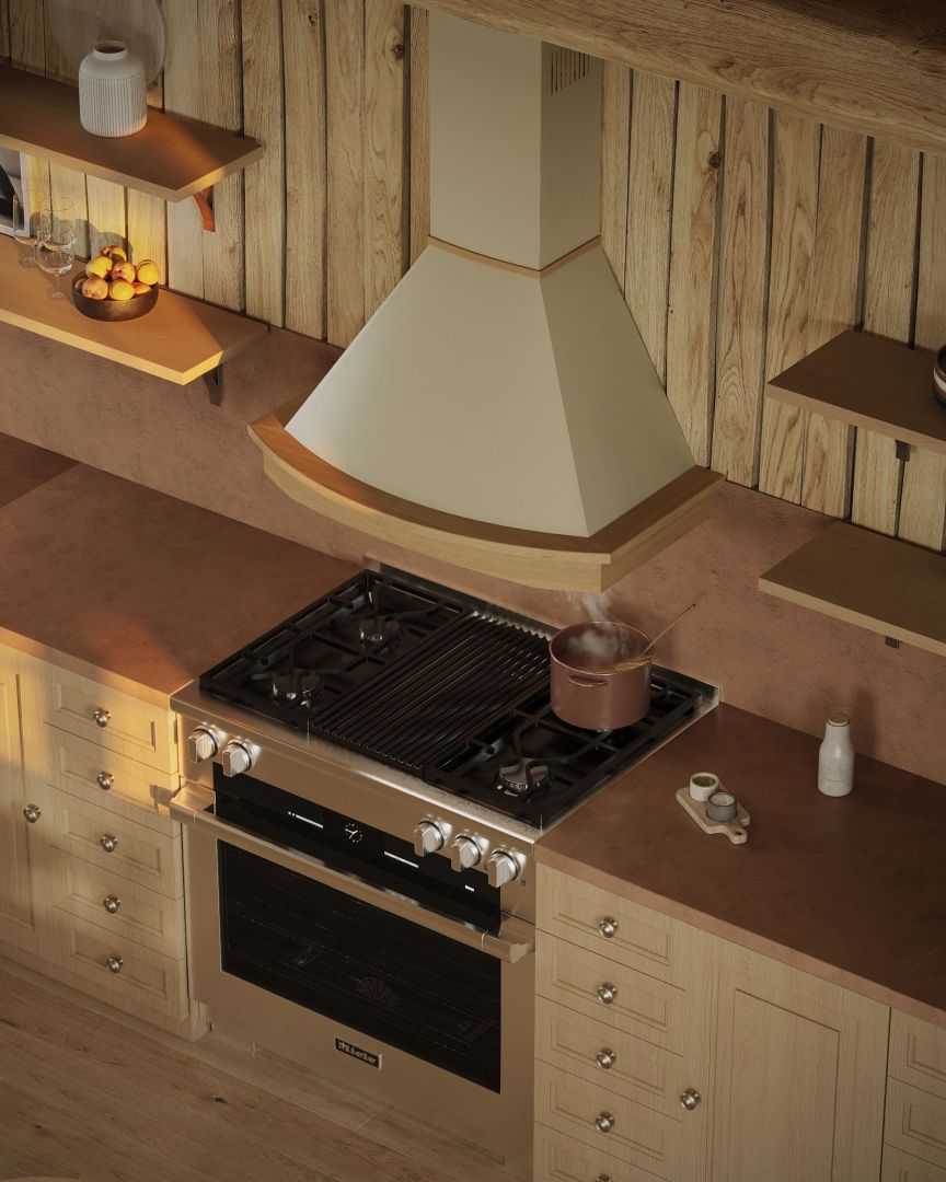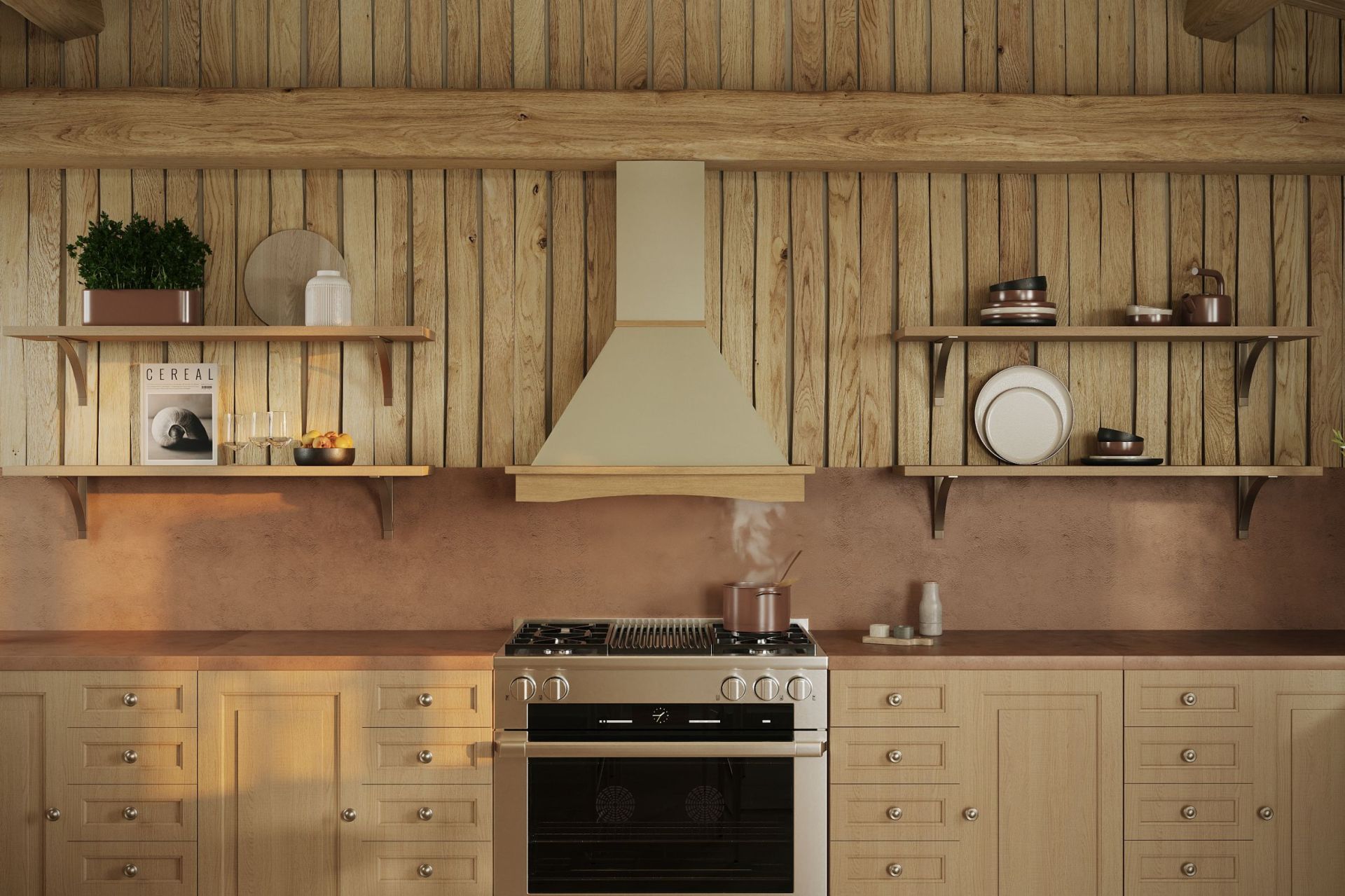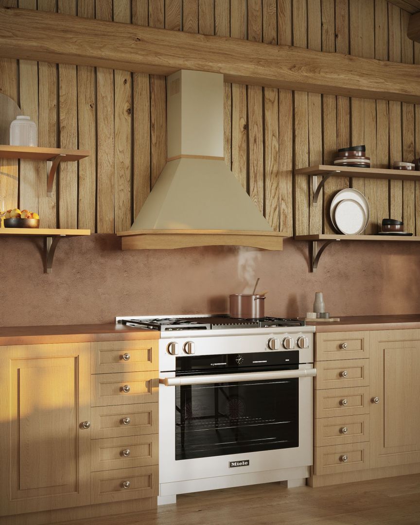 Prepracovaná funkčnosť sa snúbi s výrazným dizajnom. Klasický tvar odkazuje na idylický dekor drevených chát a domčekov a nadčasové farby robia digestor Rustic (dostupný aj ako absorbér) fenomenálny ako v boho priestoroch s avantgardnými doplnkami, tak aj v škandinávskych a retro aranžmánoch.